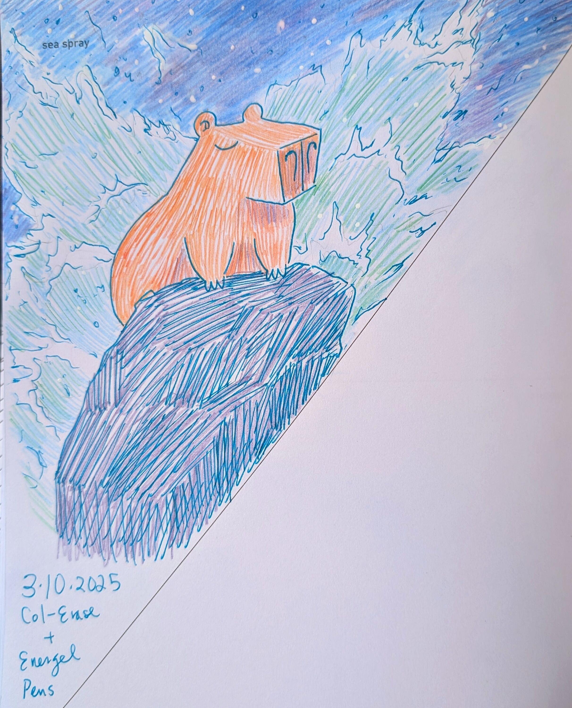 Another sketch in the 642 Things to Draw where I try to inject capybaras where I can! The prompt "Sea Spray" instantly made me think of The Little Mermaid.