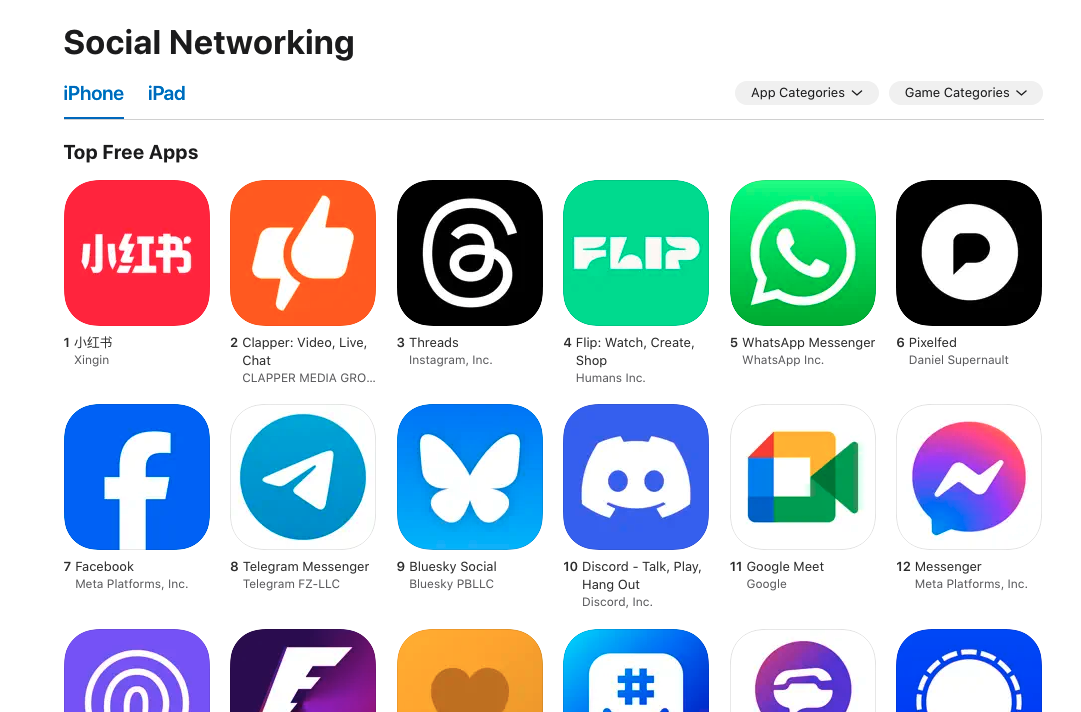 Instagram Alternative, #pixelfed , Surpasses Facebook in App Store's Top Social Apps for the first time.