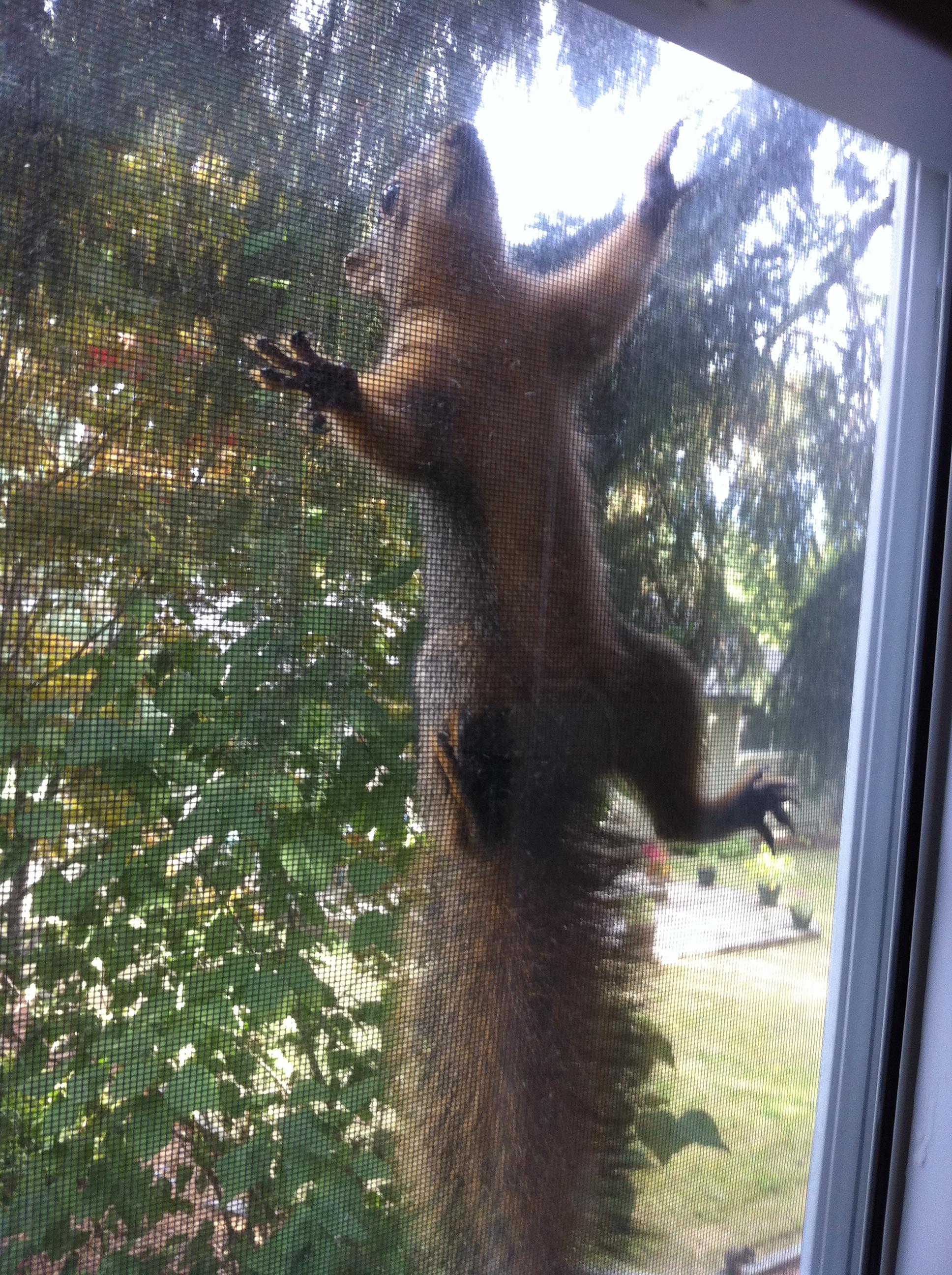 <p>This is Hank Williams Sr. He used to live above the my studio.</p><p>We used to startle each other. I’d open my door and he’d be there on a tree a foot away. We’d stop and stare at each other. Then calmly walk our separate ways.</p><p>On this day he just leapt onto the screen and stayed there for a couple of minutes while I talked to him.</p><p><a href="/tags/animals/" rel="tag">#Animals</a> <a href="/tags/squirrels/" rel="tag">#Squirrels</a> <a href="/tags/oldfriends/" rel="tag">#OldFriends</a></p>