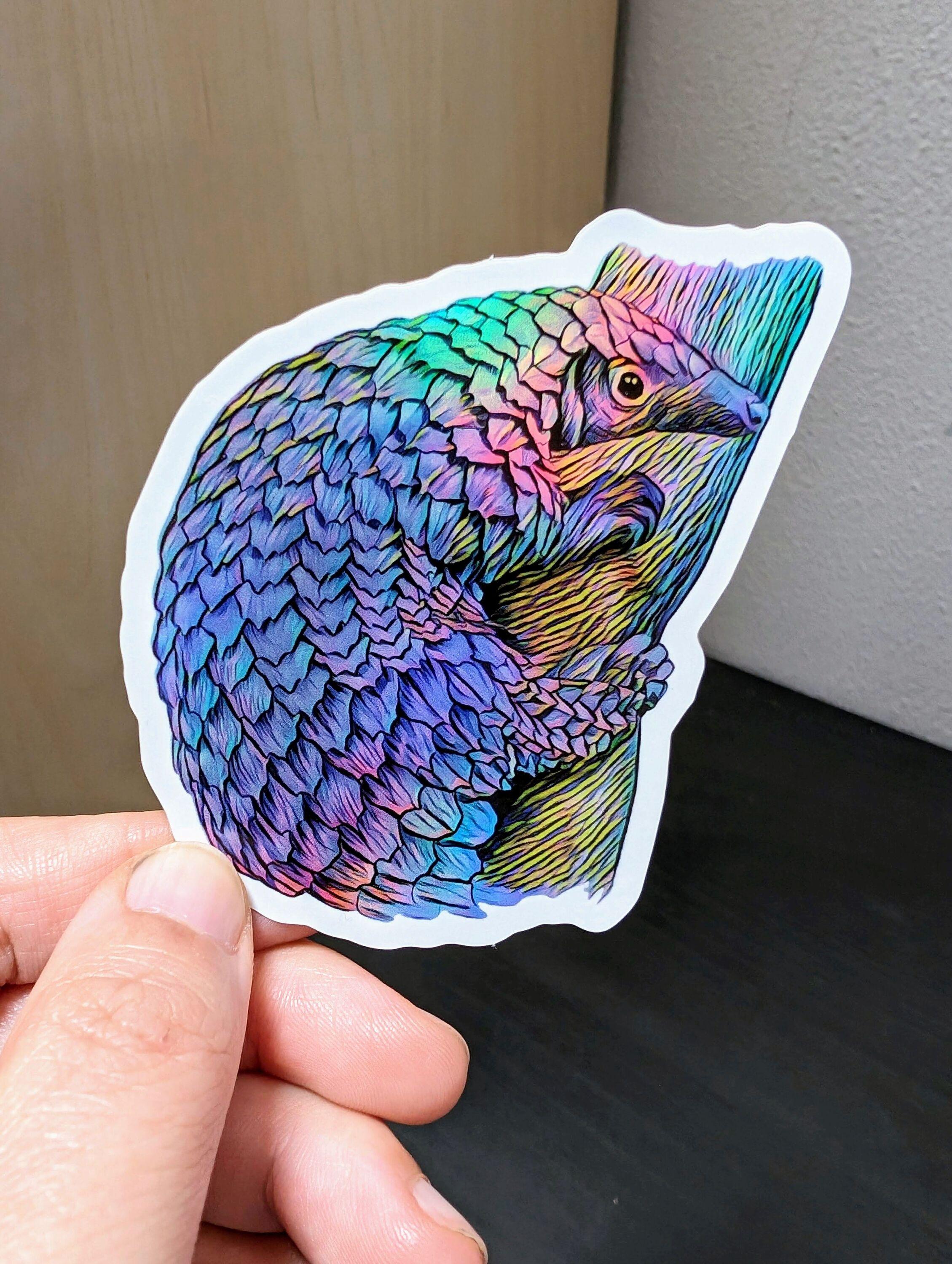 This is my holographic sticker based on my drawing of a pangolin