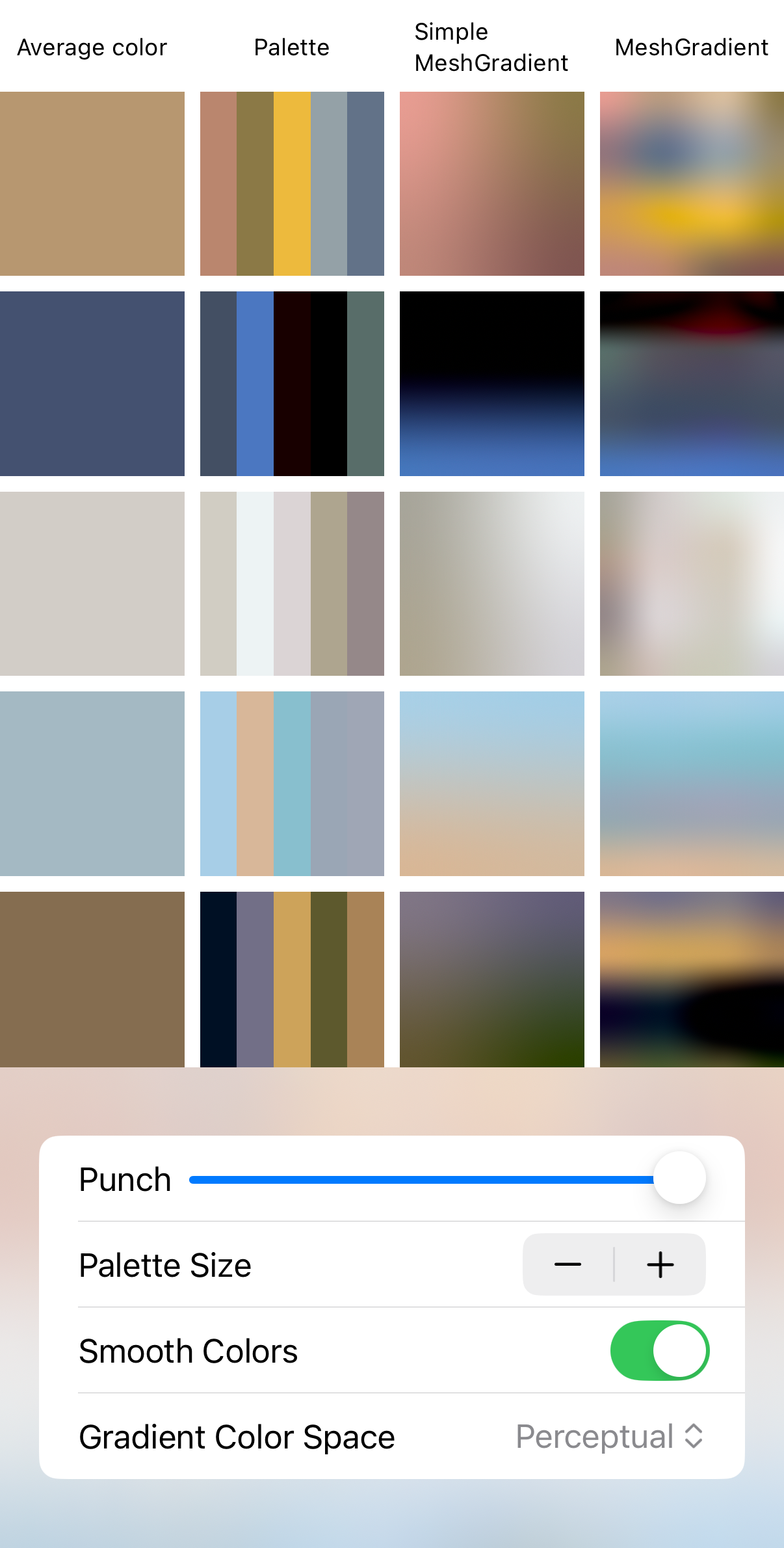 Updated my #SwiftUI BlurHash library with methods for generating representative color palettes.
