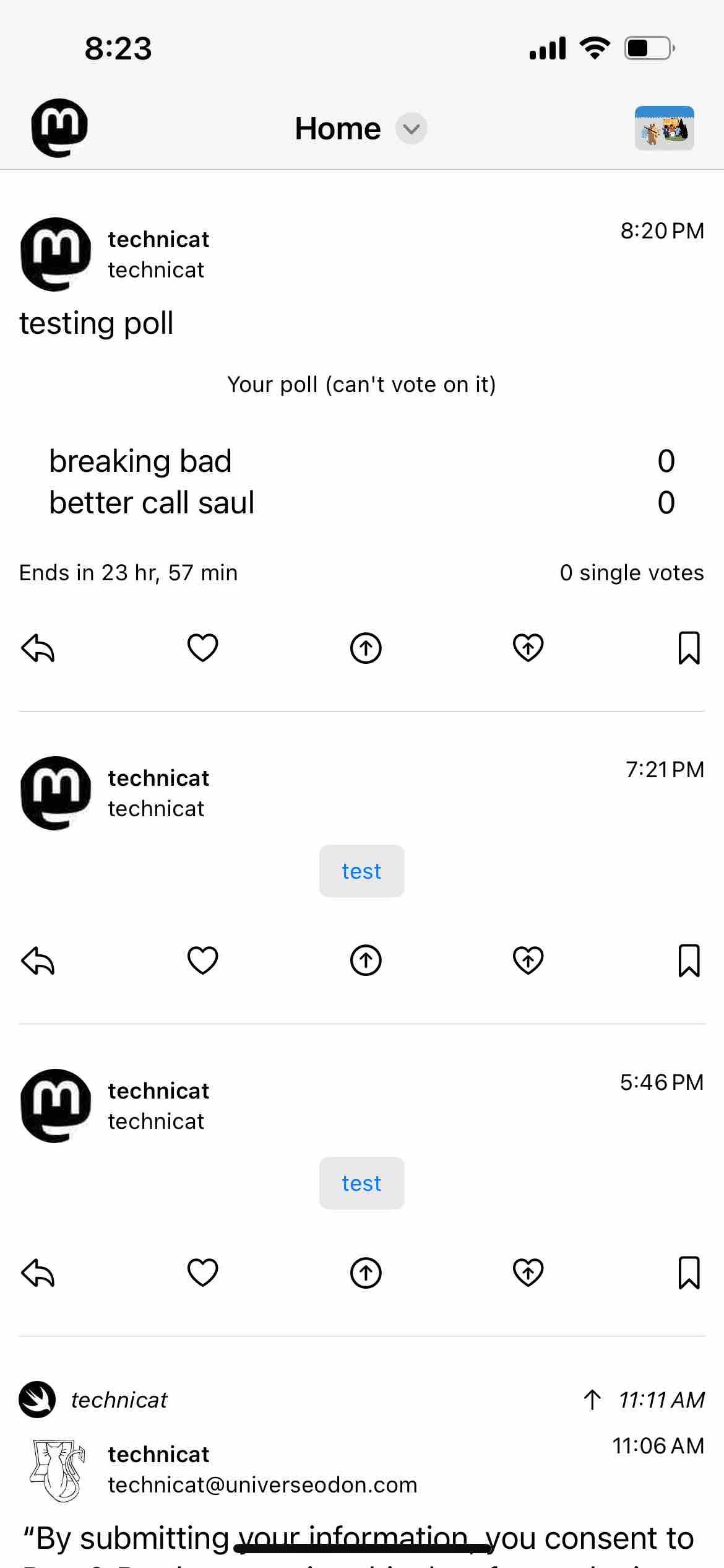 Trying out a #swiftui feature that dynamically updates a relative time, in this case the poll expiration. You can watch the seconds tick by.