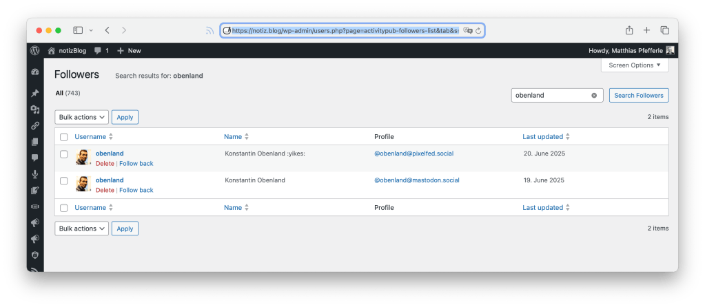 If you’ve turned on the “Following User Interface” feature in the advanced settings, you’ll see a few nice improvements. The followers list now shows whether you’re already following someone—and if not, you can follow them back with just one click.