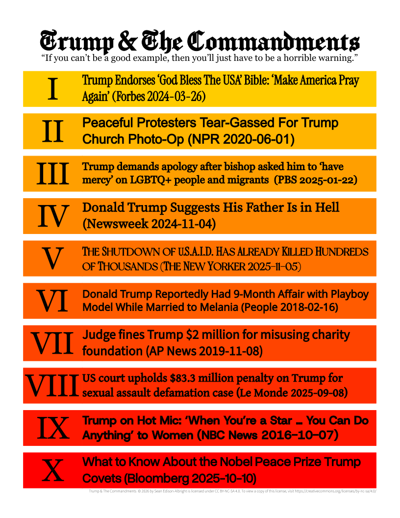 <p>I put together a poster over the weekend for everybody weary of the Trump regime's cruelty and hypocrisy, especially dedicated to public school teachers. I hope folks find it useful.</p><p>When Trump's cronies try to impose The Ten Commandments on children in public schools, it's out of a desire for control, especially over people of other faiths, and because they want to be gods. (1/3)</p><p><a href="/tags/uspol/" rel="tag">#uspol</a></p>