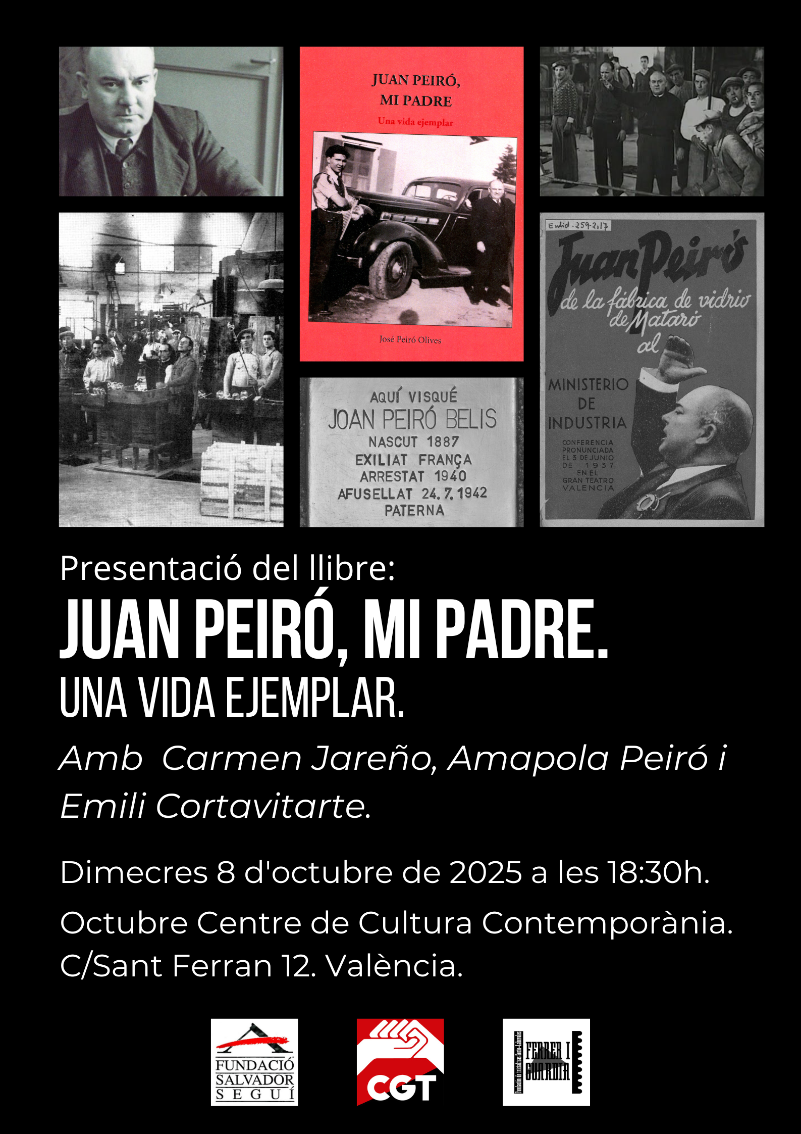 #8Octubre jornada en recuerdo a #JuanPeiró #JoanPeiró. #CGT #València #CGTValencia @FundacioSegui