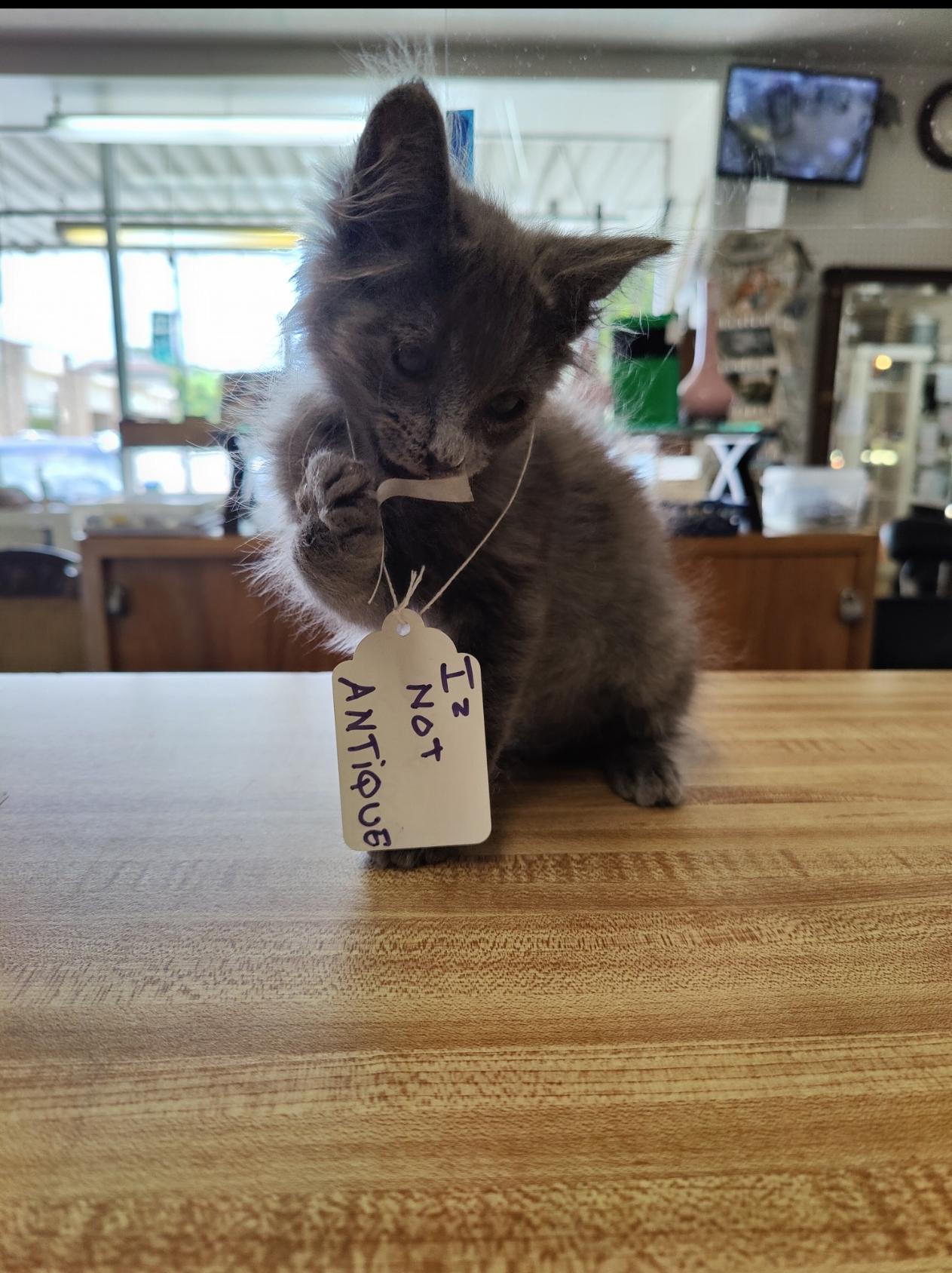 This is the brother of Anubis, the kitten with the protruding eye. I often took him with me to my #antique shop because he needed a TON of medicine around the clock. I believe he was also still bottle feeding a little bit. I do remember it was hard to wean him because being bottle fed made administering meds SO easy!