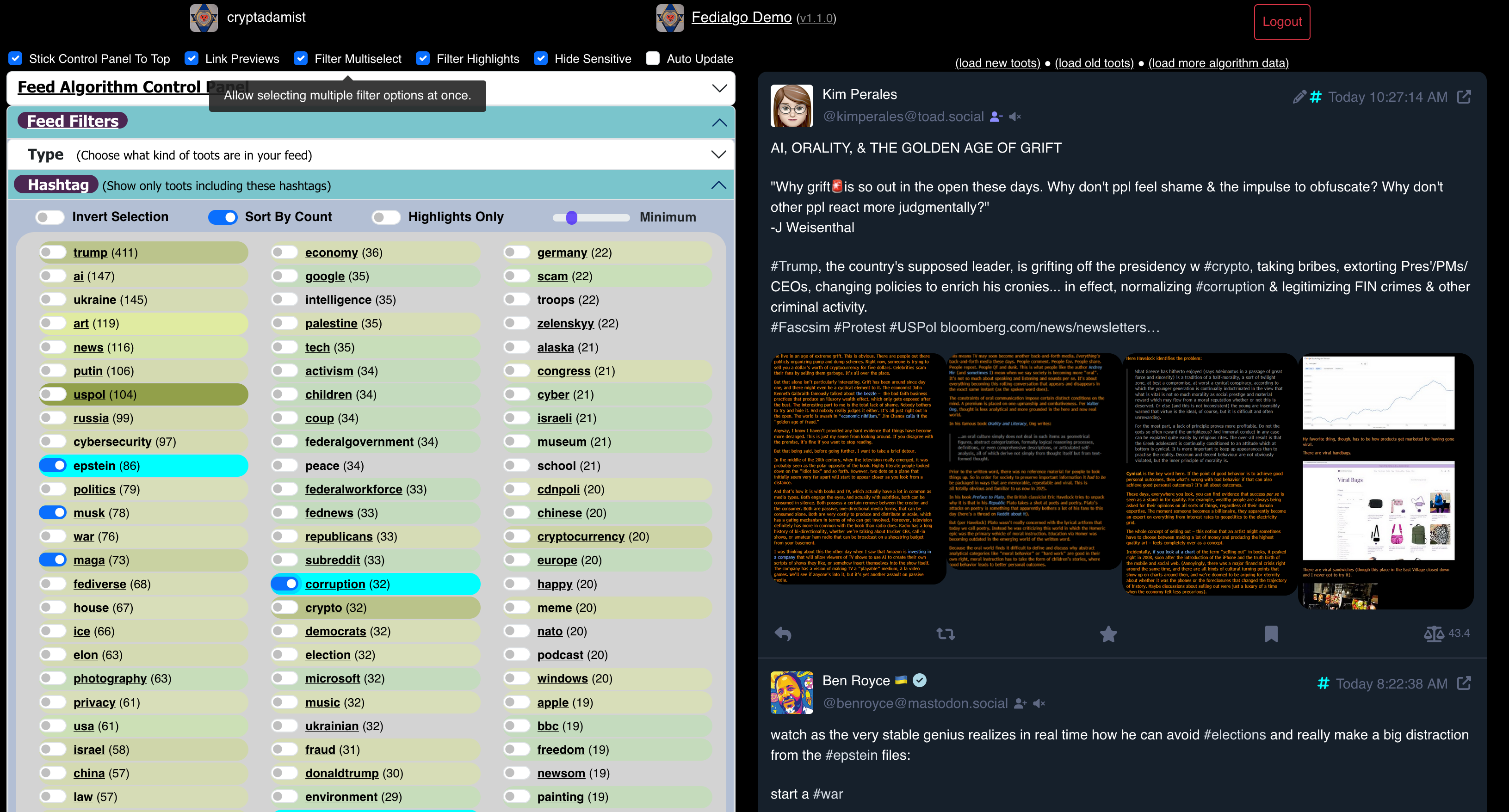 * Video of FediAlgo in action: https://universeodon.com/@cryptadamist/114395249311910522