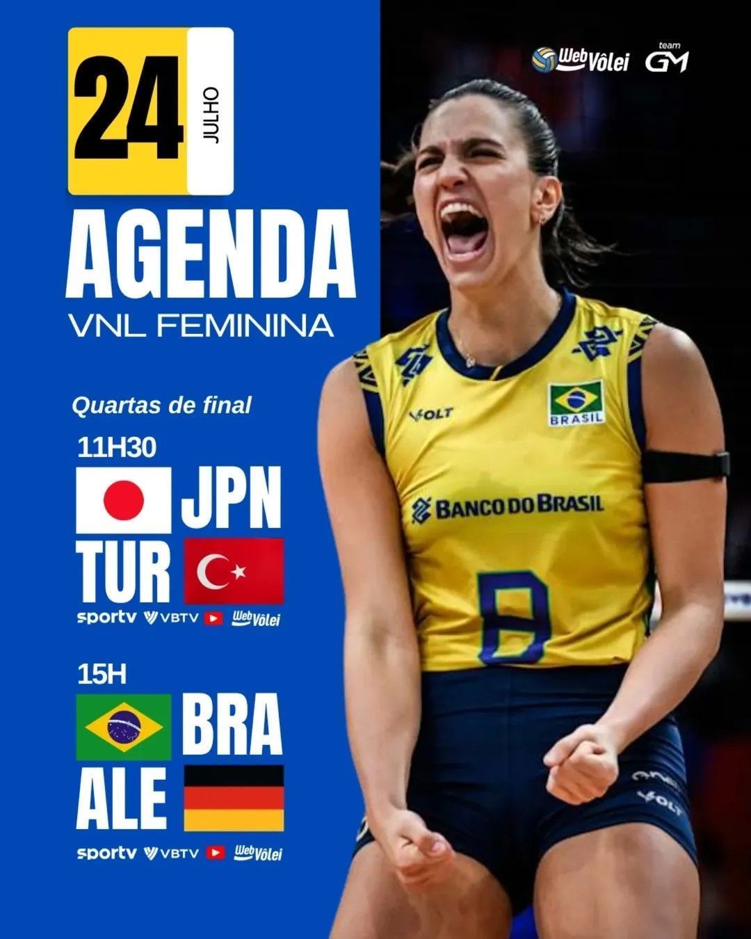 Narração ao vivo e gratuito pelo canal #WebVolei no YouTube.