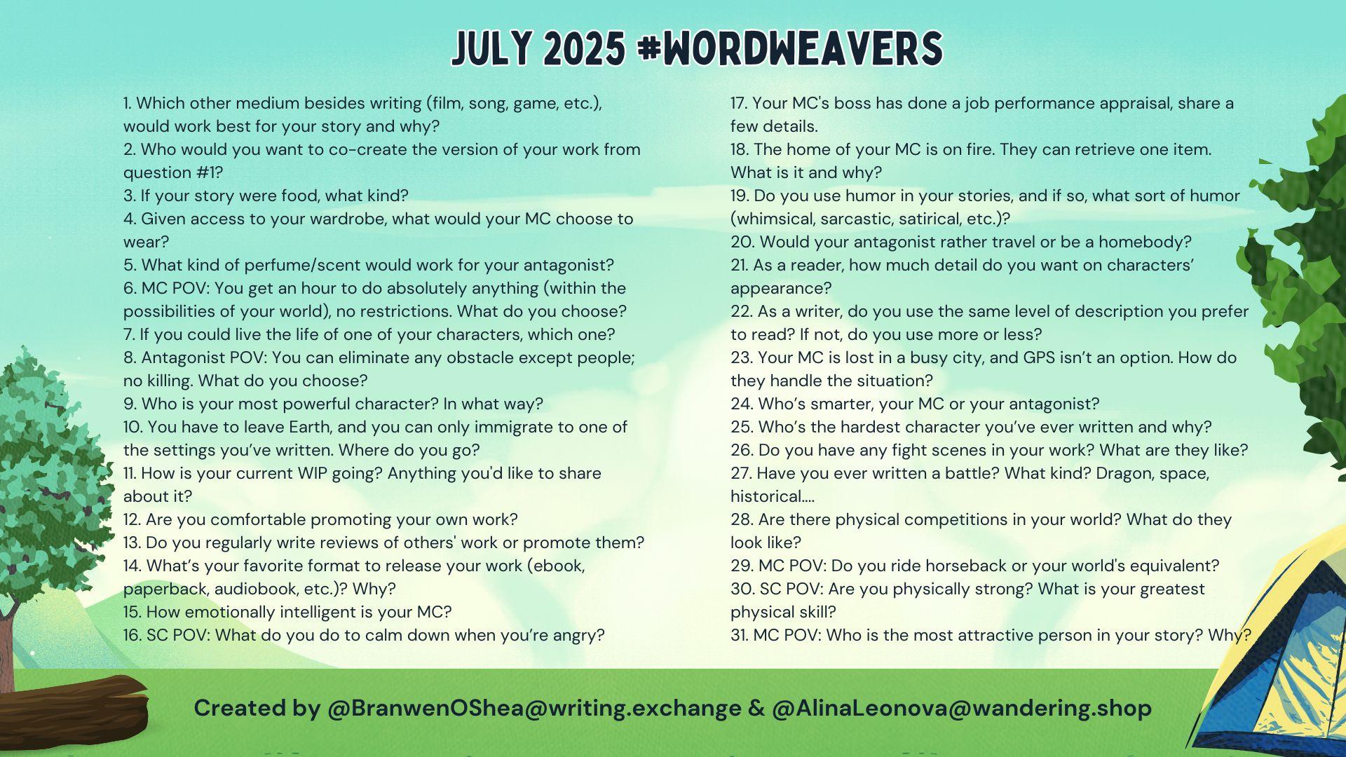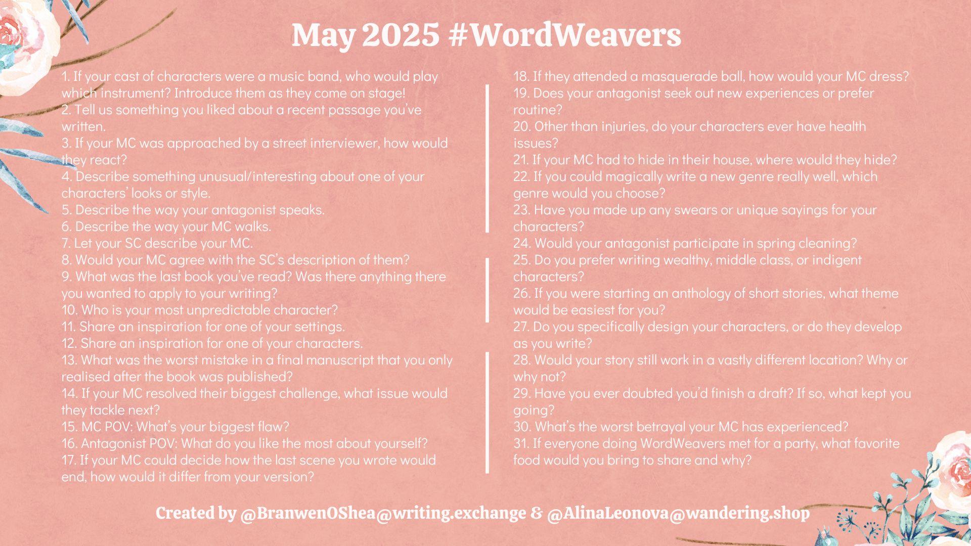 #WordWeaversQs — this # is only to find questions. Don't use it in your answers. Use space (# WordWeaversQs) when sharing to keep it tidy 🙏