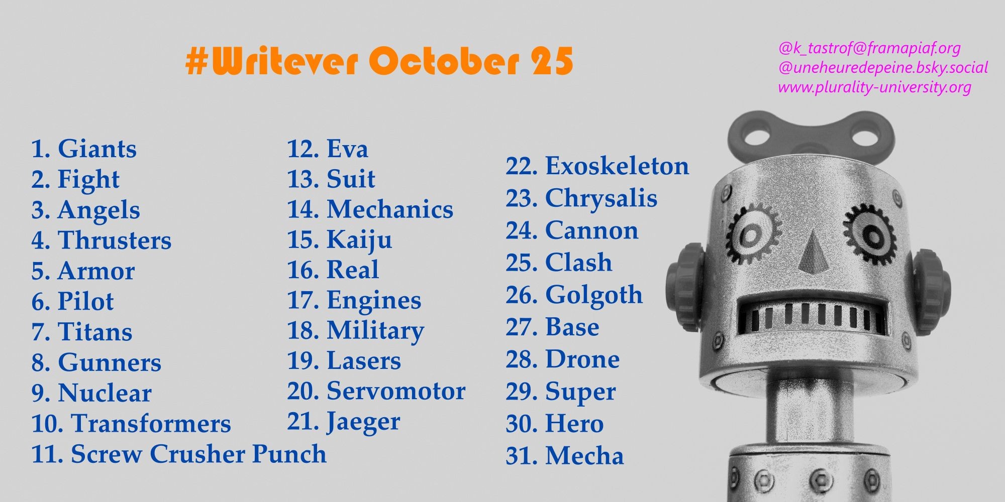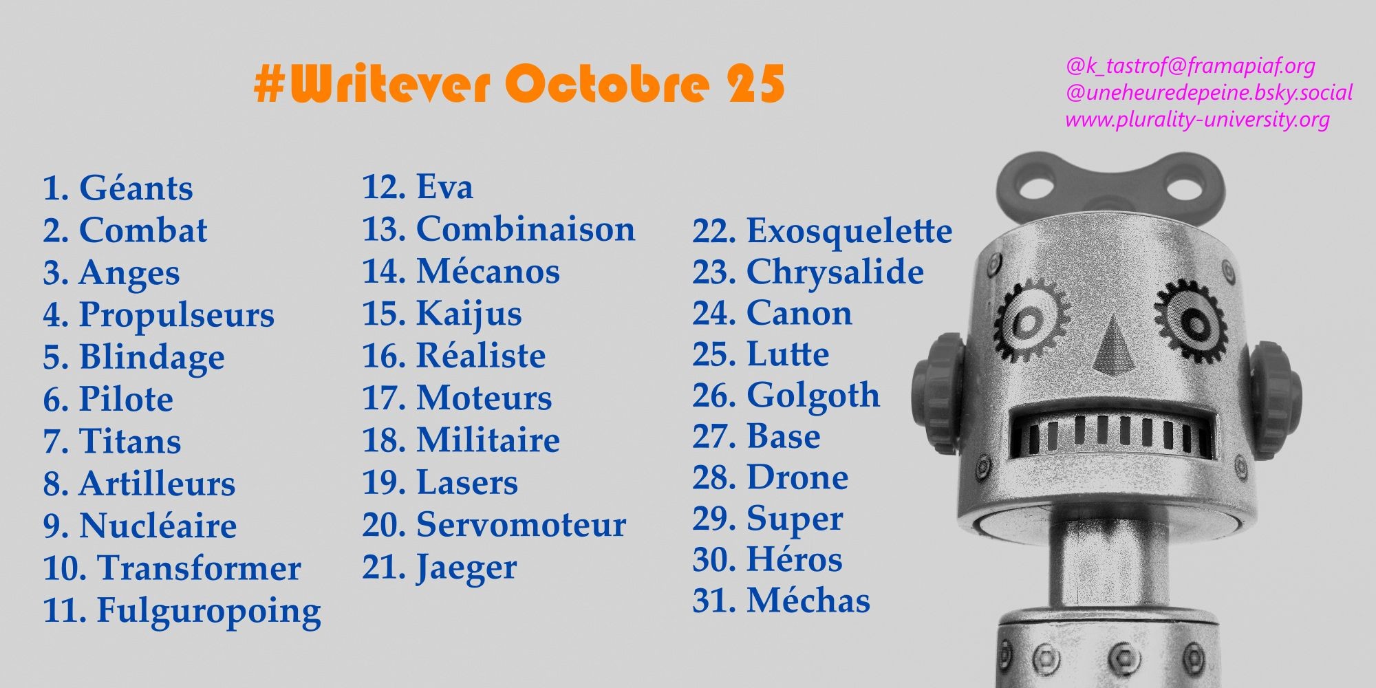 un #writever robot géant pour ce mois d'octobre concocté par @k_tastrof. on embarque pour cette grande aventure !